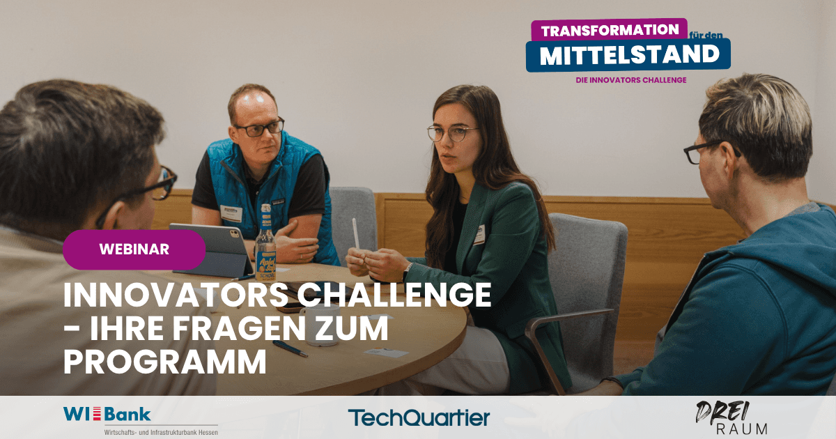 Sie möchten wissen, ob die Innovators Challenge das richtige Programm für Ihr Unternehmen ist? In unseren Webinaren stellen wir Ihnen das Programm vor und zeigen, wie mittelständische Unternehmen aus Hessen ihre Transformationsherausforderungen – von KI & Automatisierung über Cybersecurity bis hin zu New Work und Compliance – konkret angehen können.