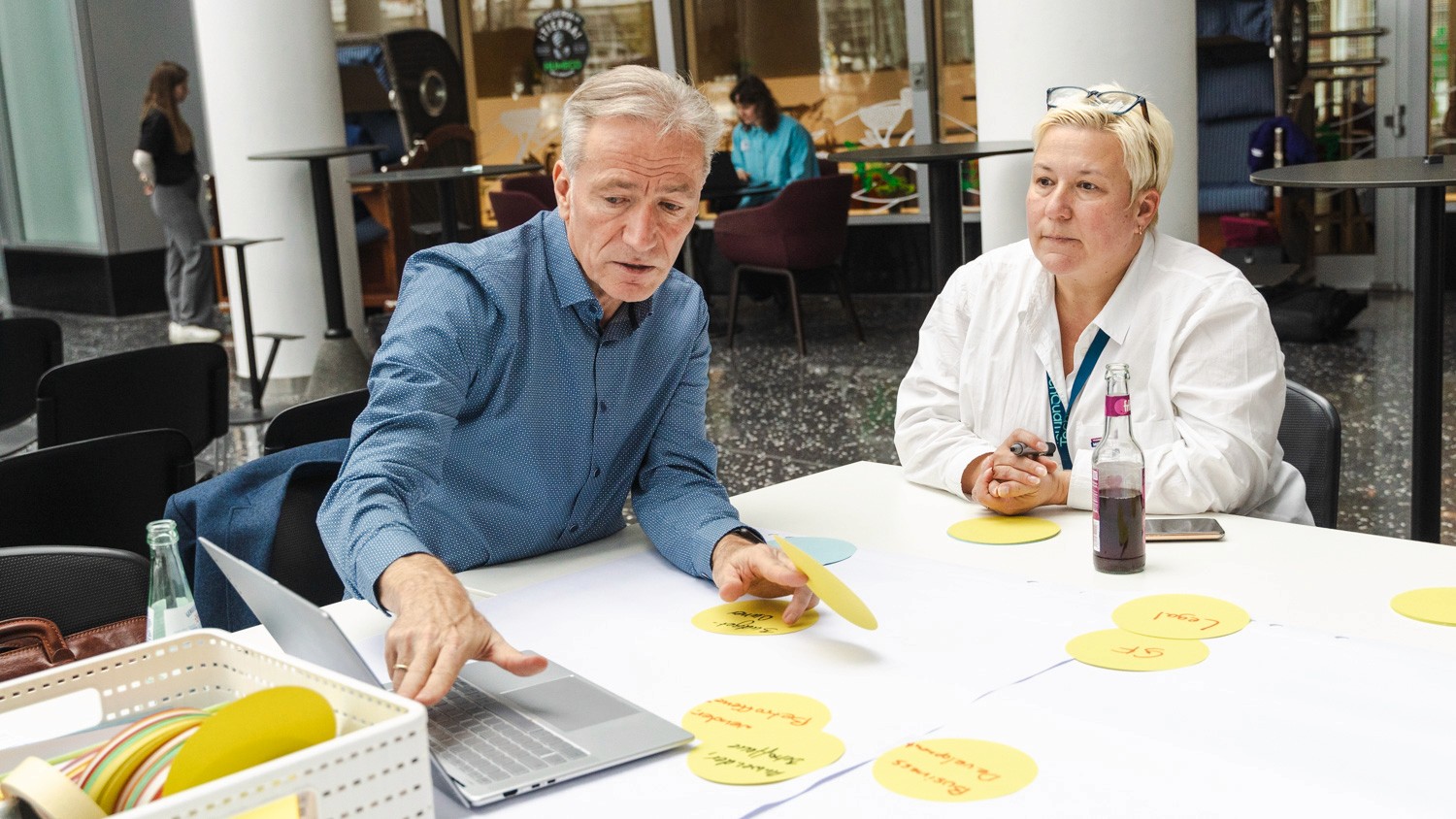 Together with Dreiraum, you can develop a transformation strategy in follow-up workshops and advisory sessions and translate it into a clear roadmap with concrete recommendations. Alternatively, if a challenge can be addressed through an external solution, TechQuartier supports you in identifying and selecting suitable startup partners.